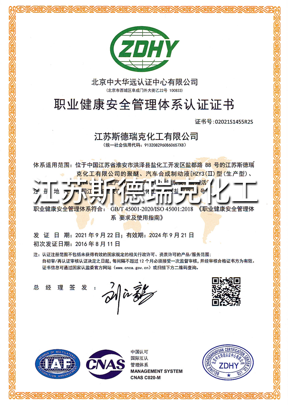江蘇斯德瑞克化工有限公司成立于2002年,是一家集研發、生產和銷售一體化的“國家高新技術企業”。現有員工100多人,其中科技人員占20%以上;位于江蘇省淮安市鹽化工園,占地面積180畝,建筑面積達38000多平方米。
